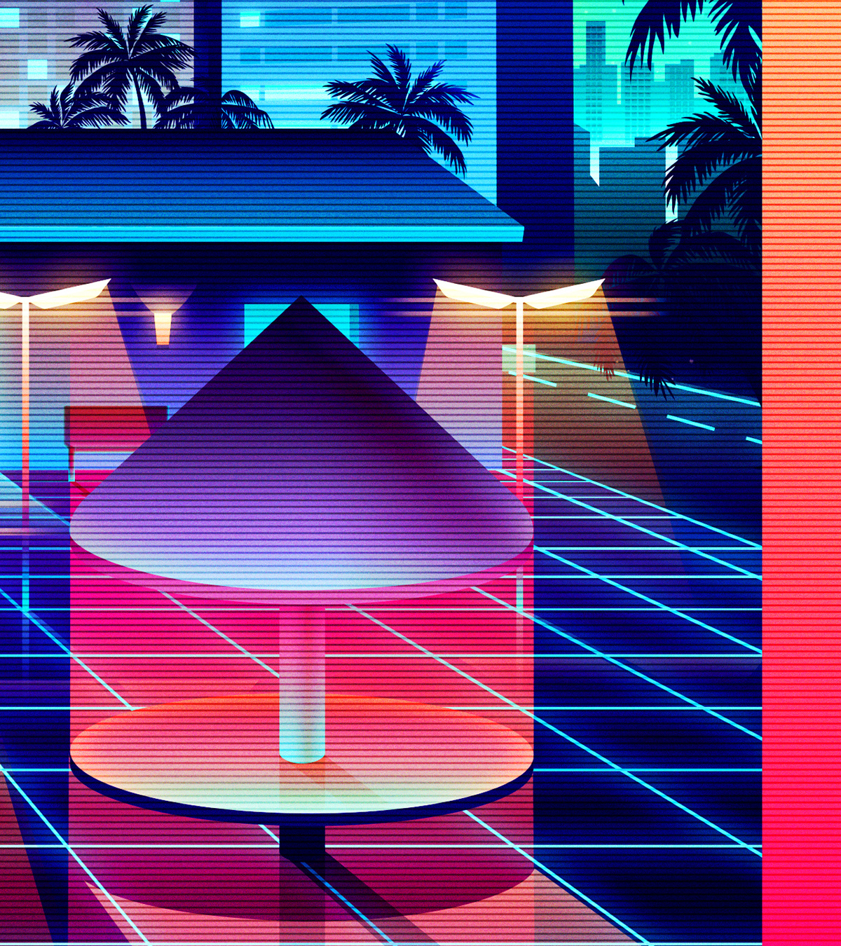 This branding and illustration project approaches the classic 20-sided dice with a retrofuturistic aesthetic.